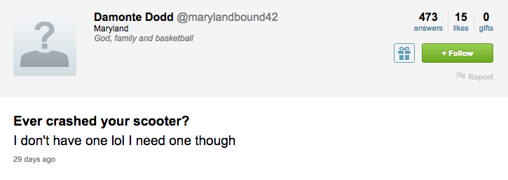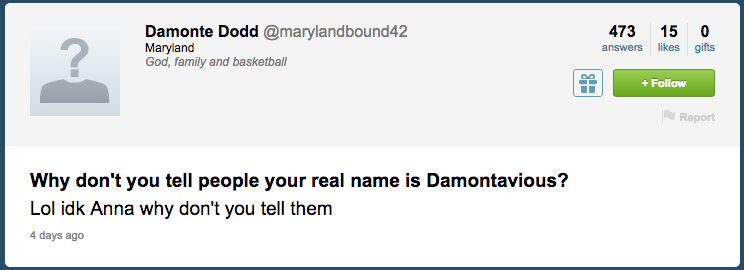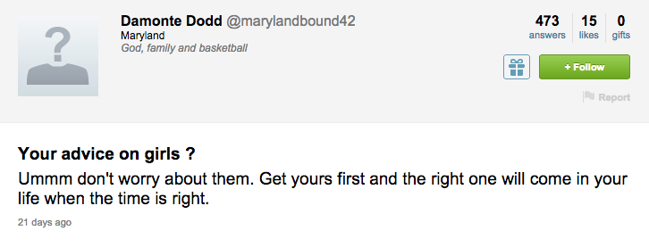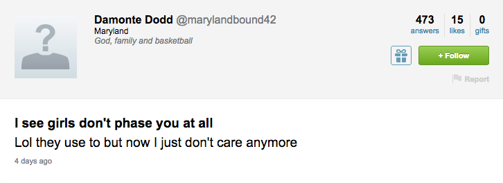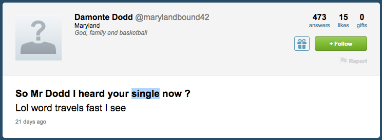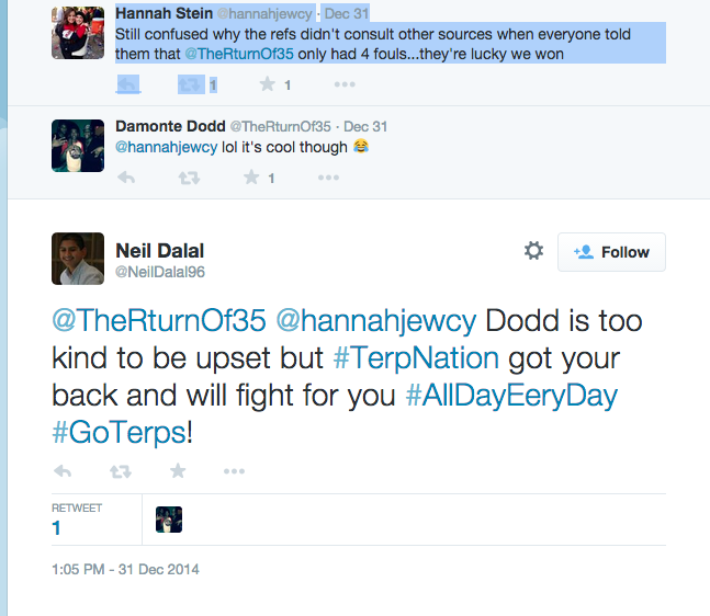 The best thing about Dodd’s Twitter as a whole, though, was all the Terrapin spirit people expressed. While some of the questions and tweets directed at him seemed to be just fangirls, there was a lot of heartfelt stuff on there that Dodd retweeted, like when referees in the Michigan State game ejected Dodd after four fouls instead of five.