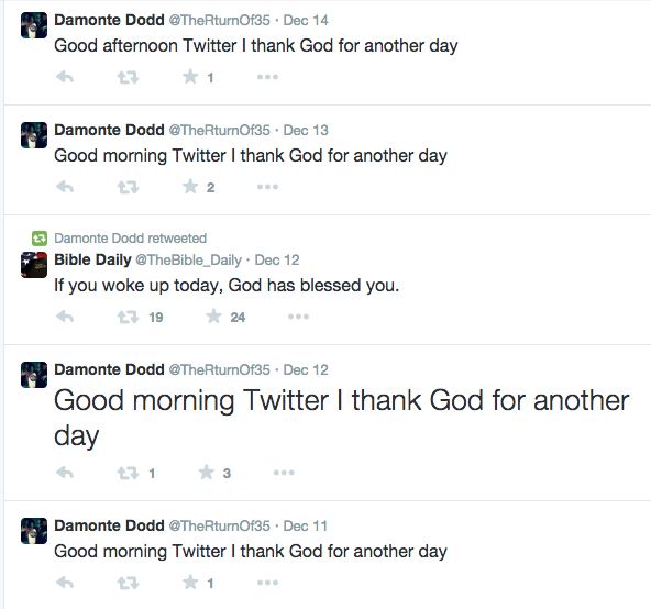 Men’s basketball forward Damonte Dodd tweets the same exact tweet every single day.