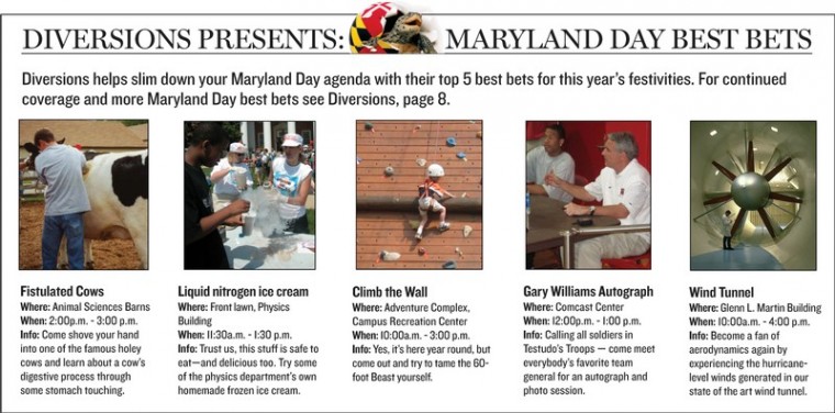 But the university also likes to stick with what works, what gives Maryland Day the unique feel of a carnival in the world of academia: munching on the Dairy’s ice cream, watching the digestive system of cows at the farm or experiencing the power of the Glenn L. Martin Wind Tunnel.