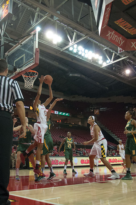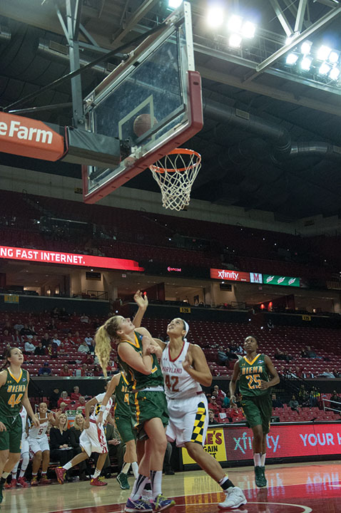 Center Alicia DeVaughn finishes a lay up in the Terps’ 105-49 win over Siena on Dec. 9, 2013.