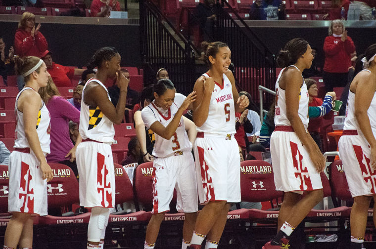 The Terps celebrate 105-49 win over Siena on Dec. 9, 2013.