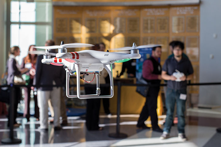 Research associate and doctoral candidate Derrick Yeo flies a remote-controlled Quadcopter at the Mpact Disaster Resilience demonstrations on Friday in the Jeong H. Kim Engineering Building.