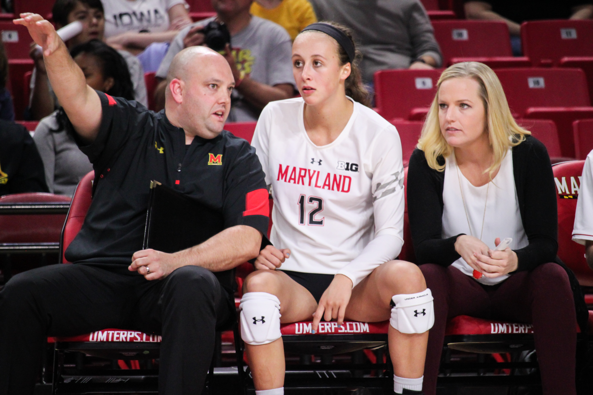 Later, Wicinski climbed over Maryland’s bench, with coaches shrinking into their seats, to save an errant dig. Milana dove to her left for a dig before Pritchard ended a string of four volleys between the teams for a kill.