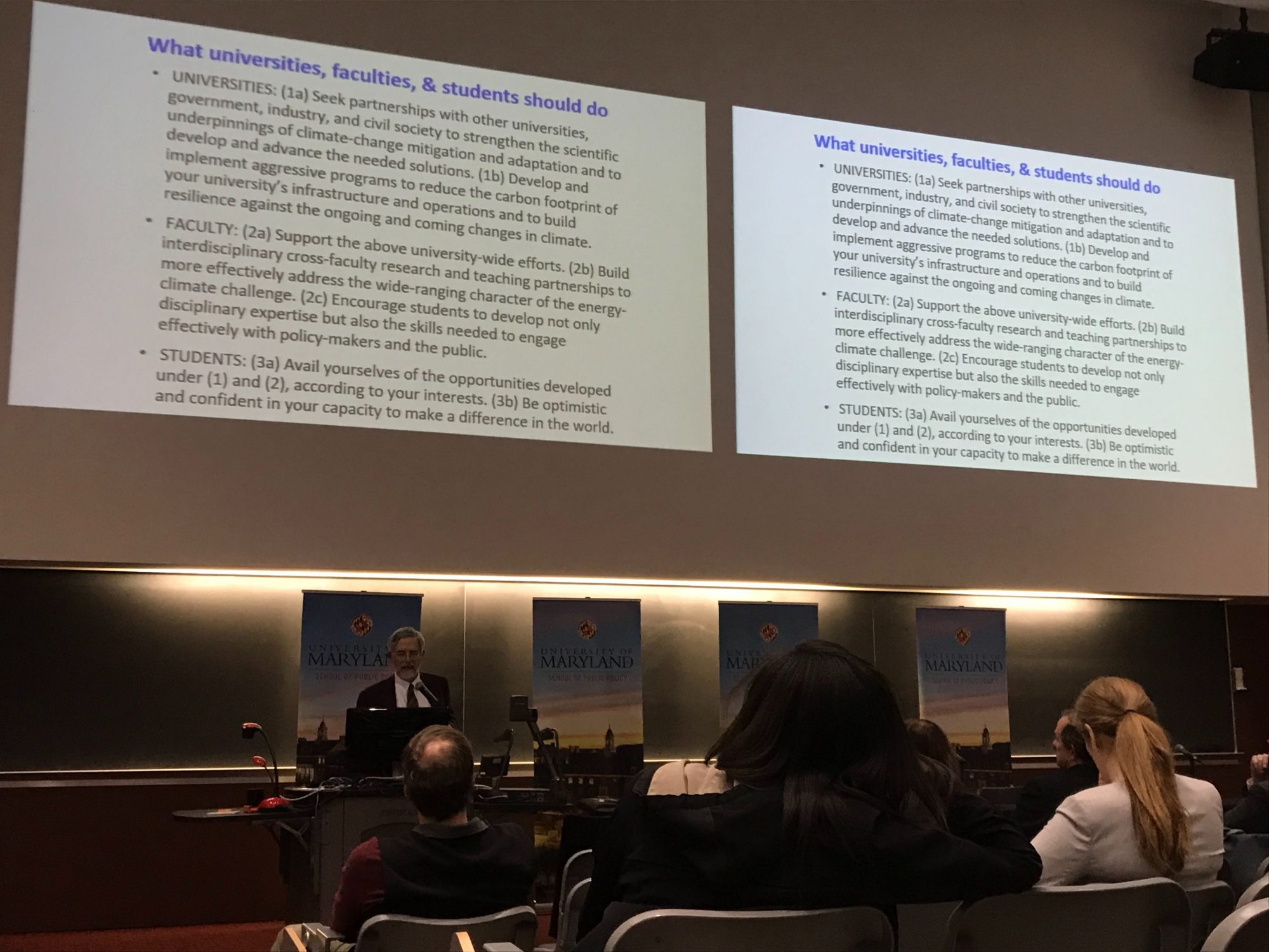 Holdren, a Harvard professor, was the keynote speaker Tuesday for “Meeting the Energy-Climate Challenge: Science, Technology, and Policy at a Crossroads,” a lecture held at the University of Maryland’s Bioscience Research Building.