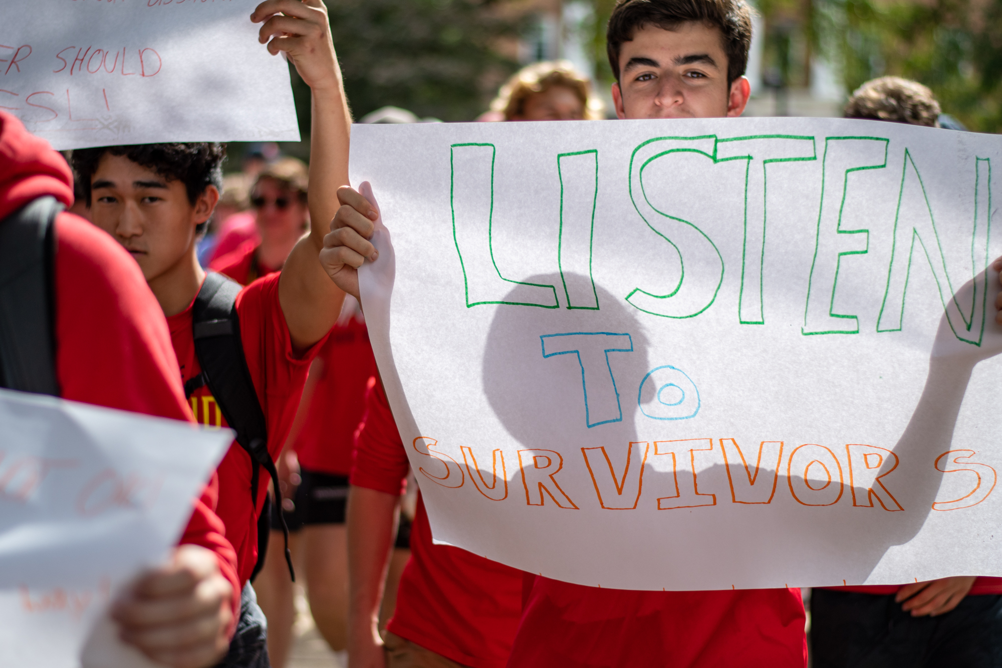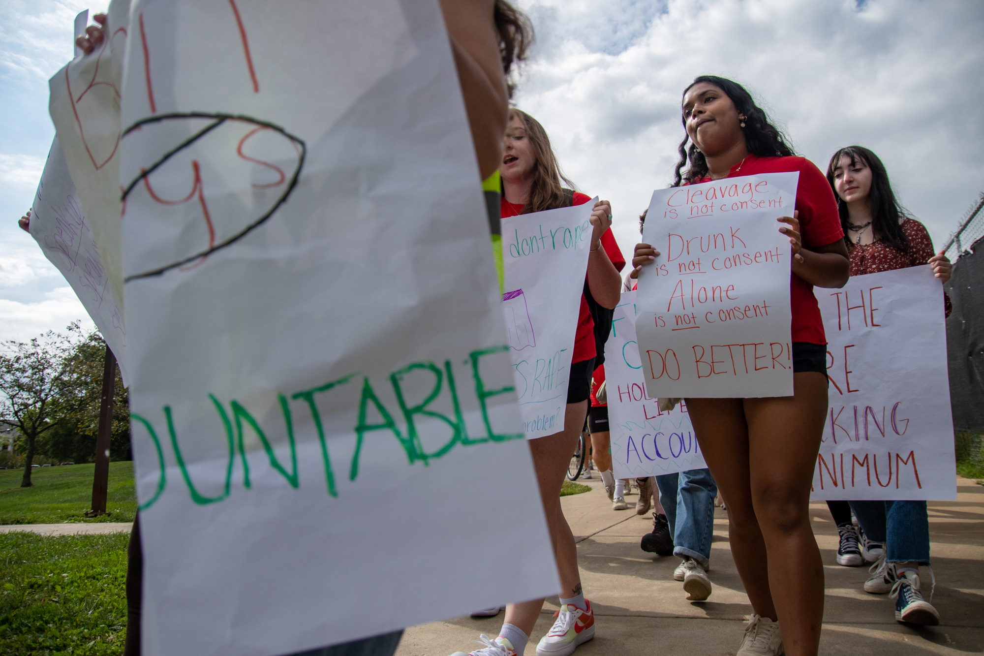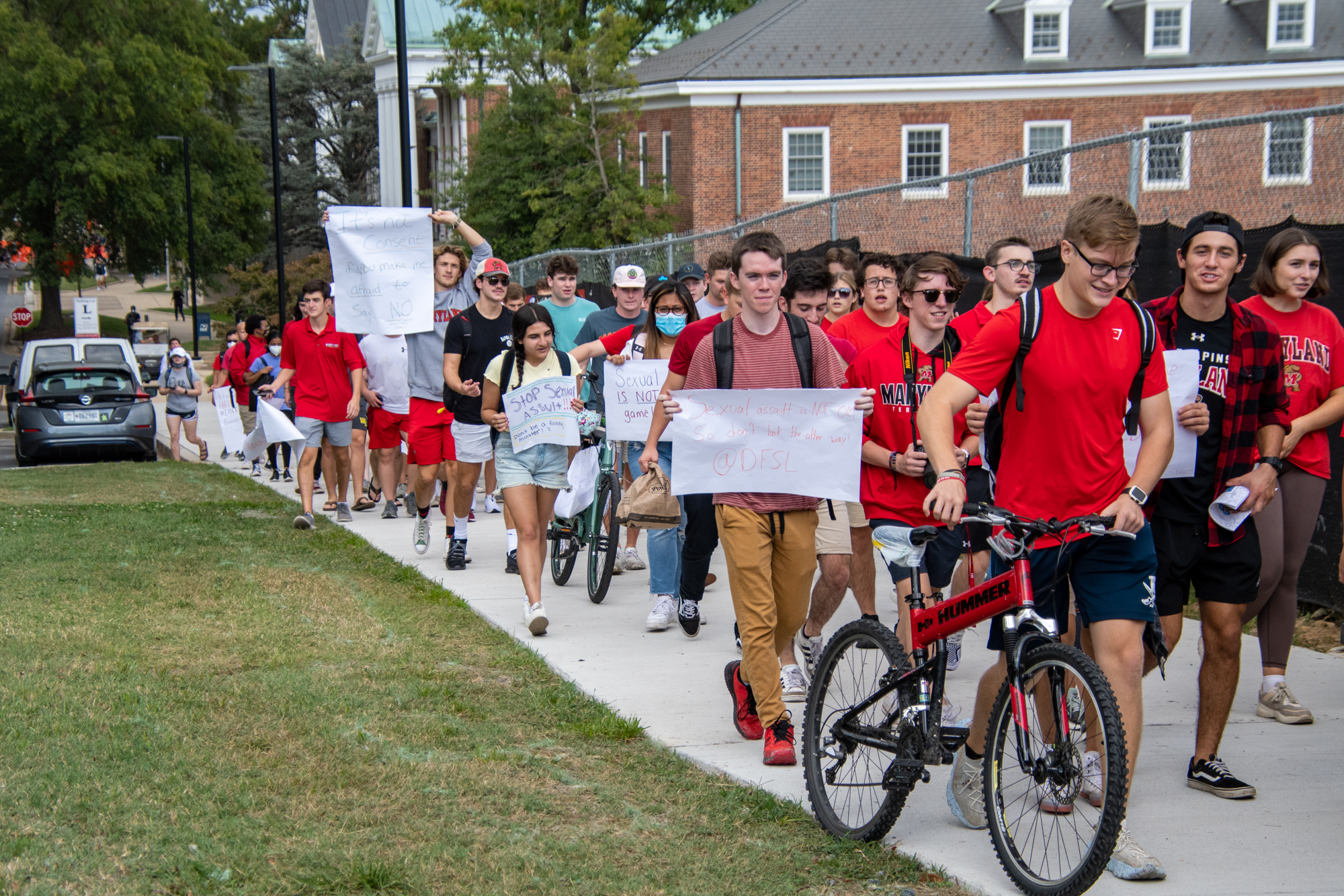 The students were taking part in the Reclaim the Red: Rally for Respect, a march led by the Student Government Association that called for the university to do more to address sexual assault on campus. As students marched from McKeldin Library to Fraternity Row, their anger and frustration was palpable.