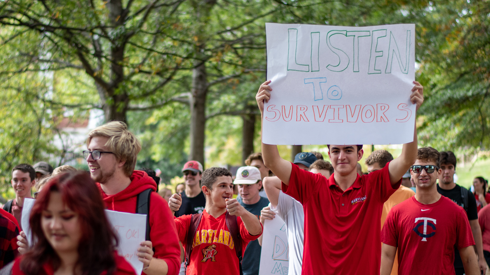 The students were taking part in the Reclaim the Red: Rally for Respect, a march led by the Student Government Association that called for the university to do more to address sexual assault on campus. As students marched from McKeldin Library to Fraternity Row, their anger and frustration was palpable.