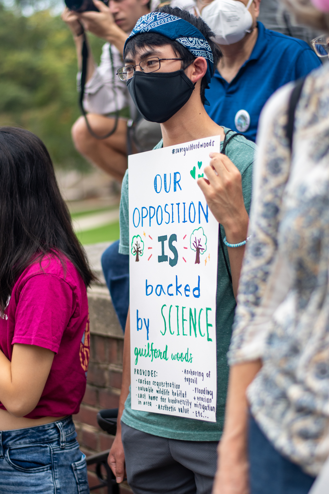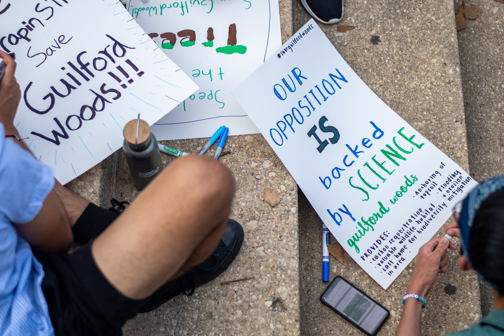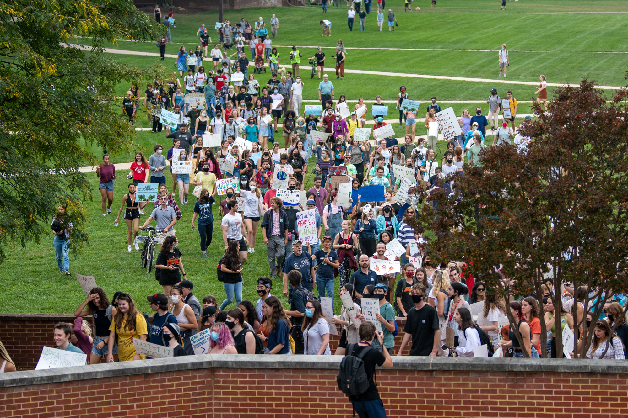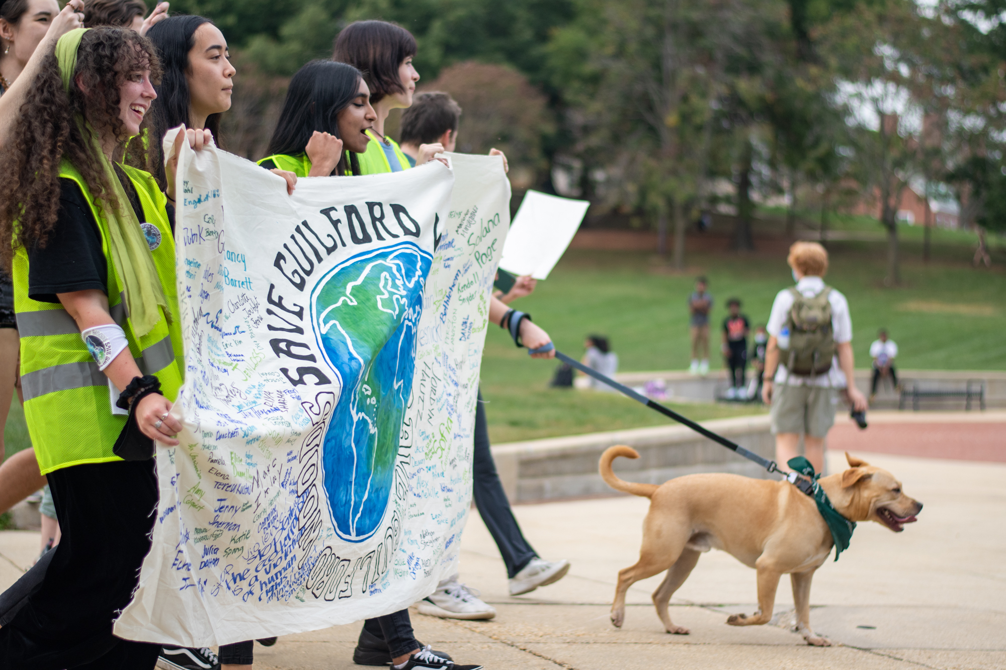 After Pinsky’s speech, attendees marched to the steps of the Main Administration building while shouting “Save Guilford Woods!”