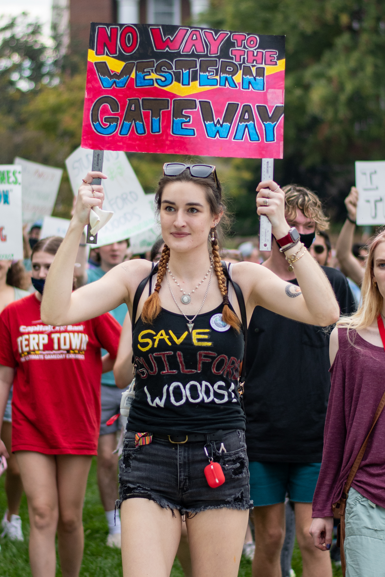 On Friday, students, local politicians, environmental activists and scientists ventured to McKeldin Mall to protest the development. Students made posters with messages such as “deforestation is not sustainable development,” and some attendees wrote postcards to the Maryland Board of Public Works opposing the development.