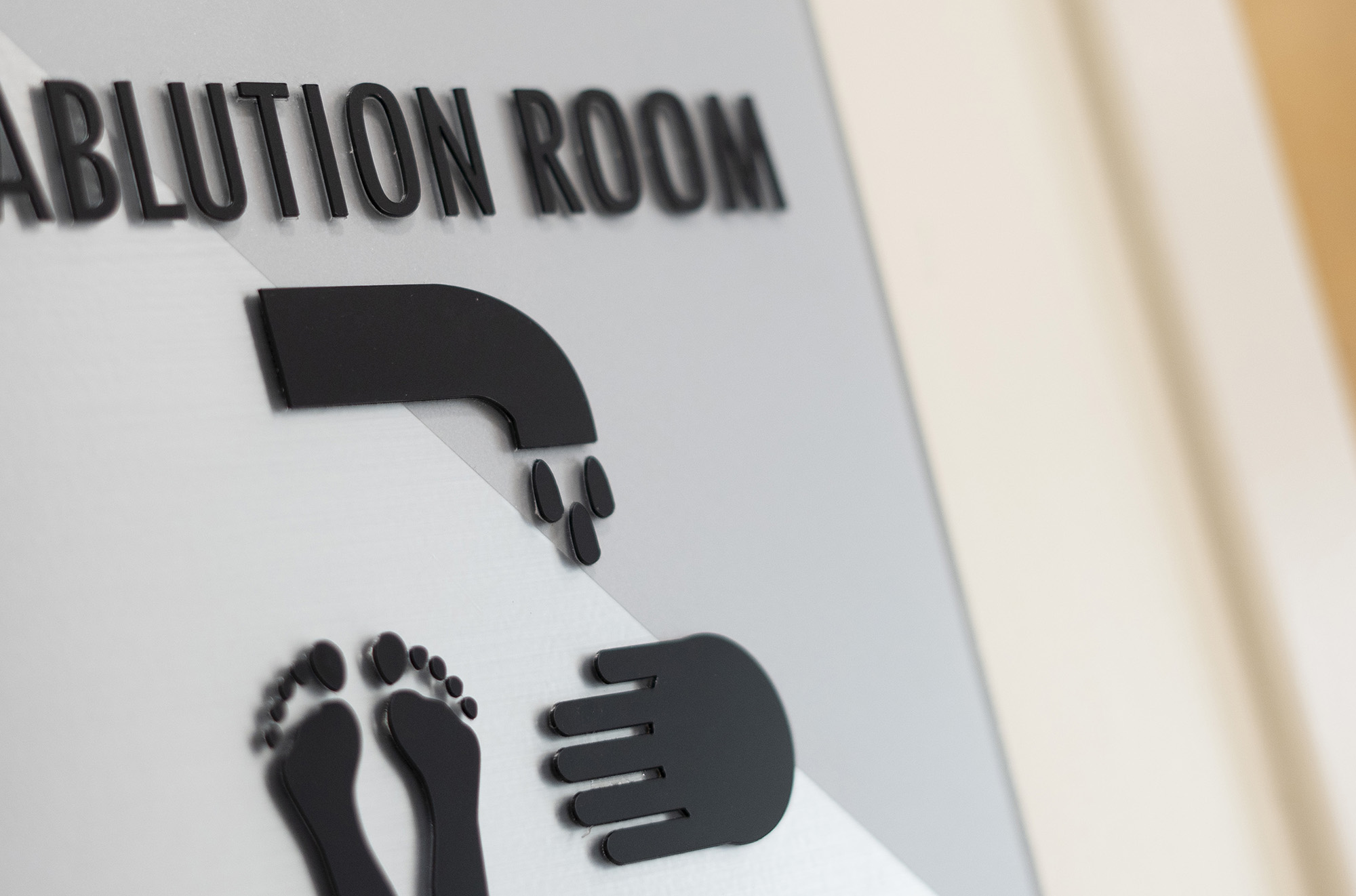 The room has private washing stations for the purification process before five daily prayers. For Muslims, washing parts of their body before prayer is an important part of their faith and signifies cleanliness, as dictated in the Qu’ran, the holy book of Islam.