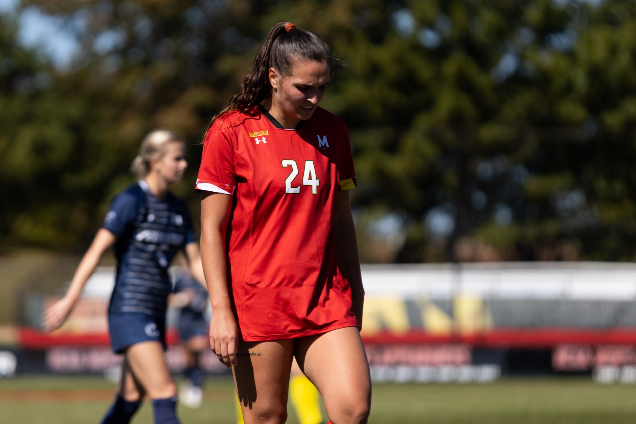 The half ended with controversy. After Ava Morales won a free kick with silky dribbling on Maryland’s left wing, the referee called the play back after allowing an advantage.