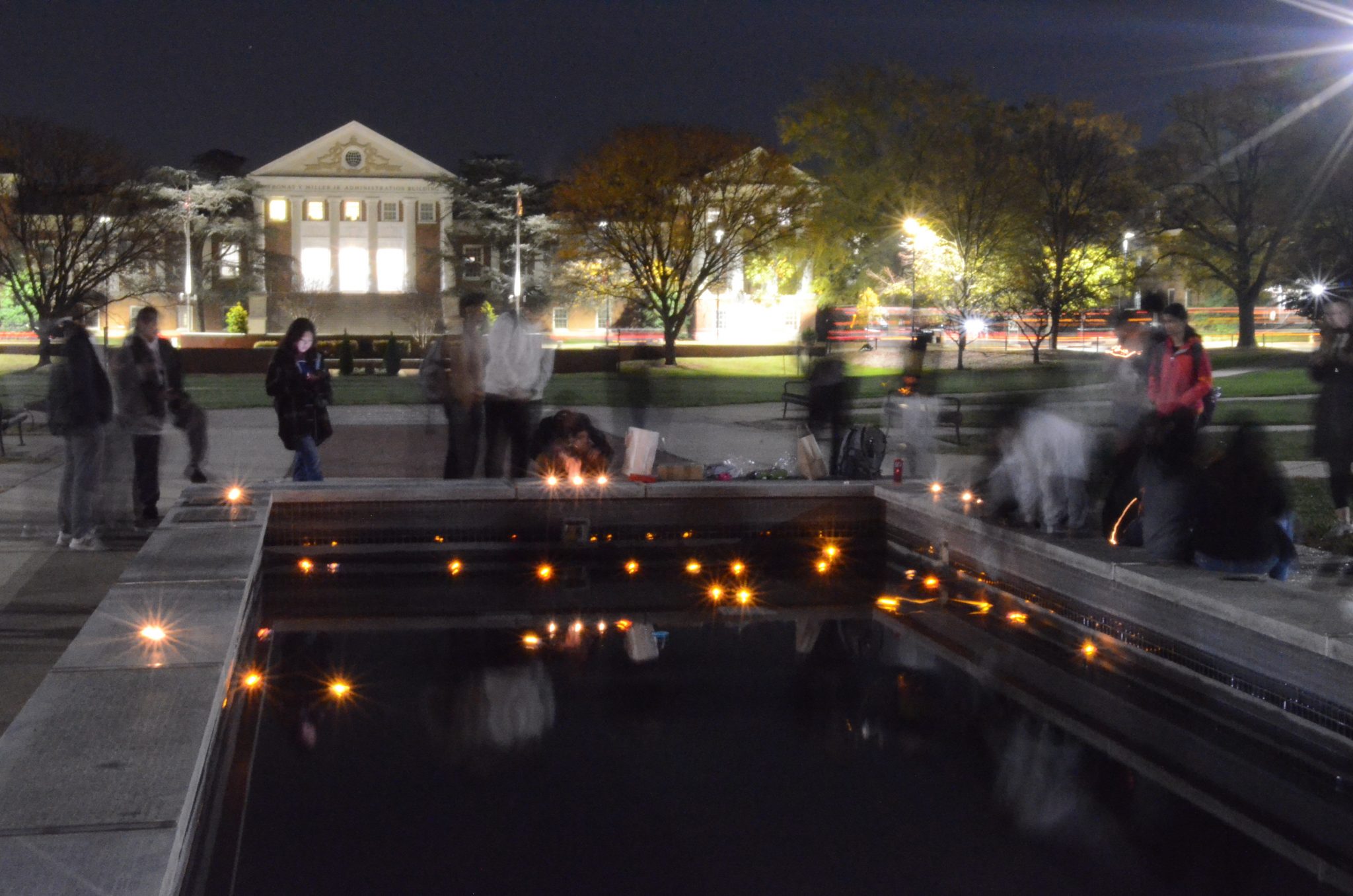 Diyas illuminated the fountain on McKeldin Mall Monday as dozens of University of Maryland community members celebrated Diwali.