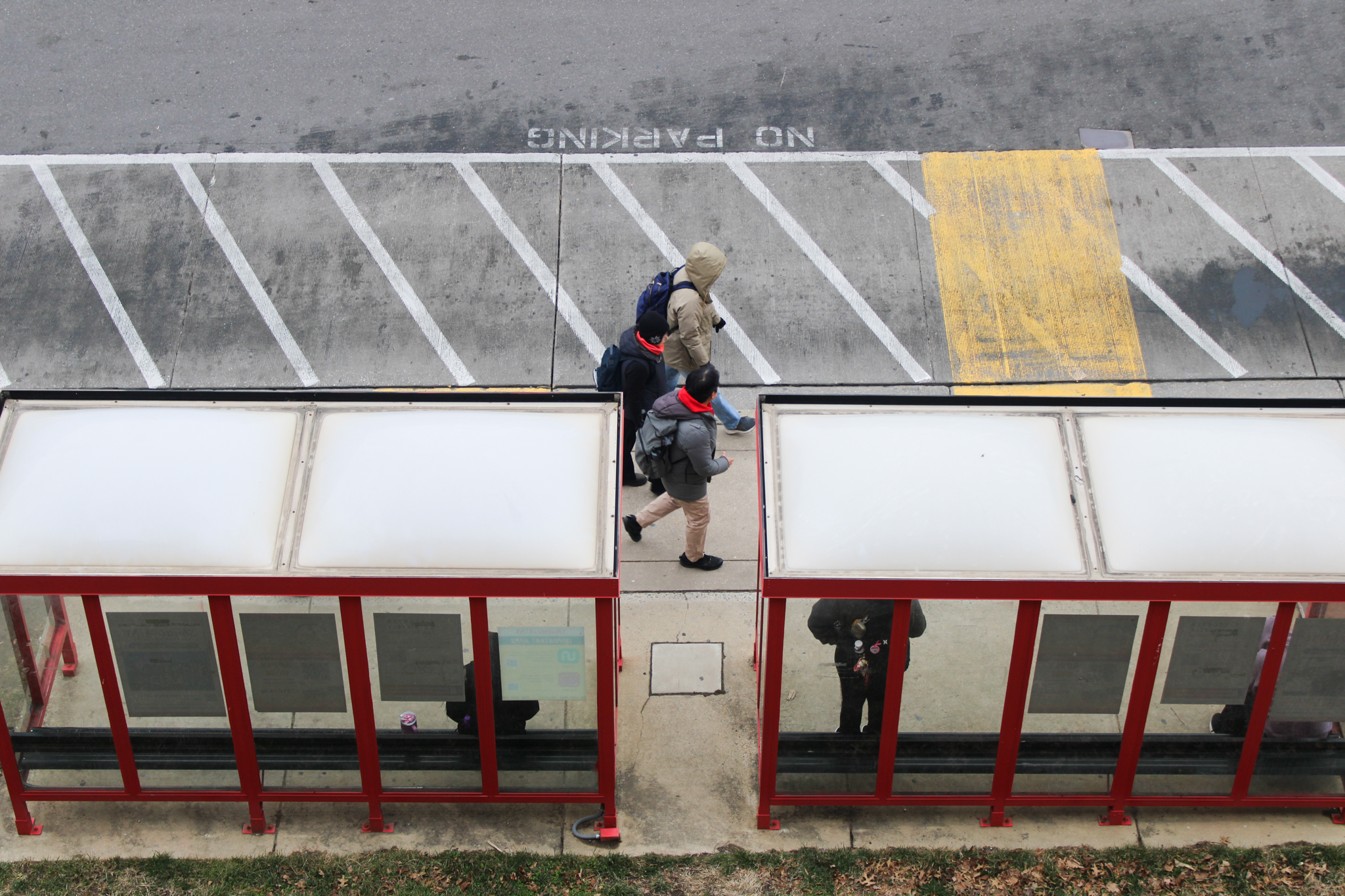 People pass the Regents Drive Garage bus stop on Feb. 12, 2025. (Giuseppe LoPiccolo/The Diamondback)