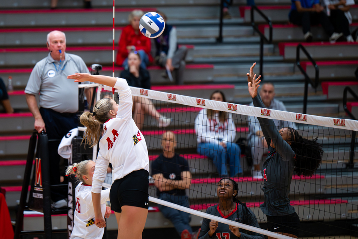 [Maryland volleyball prevails in thriller against Davidson, 3-2]