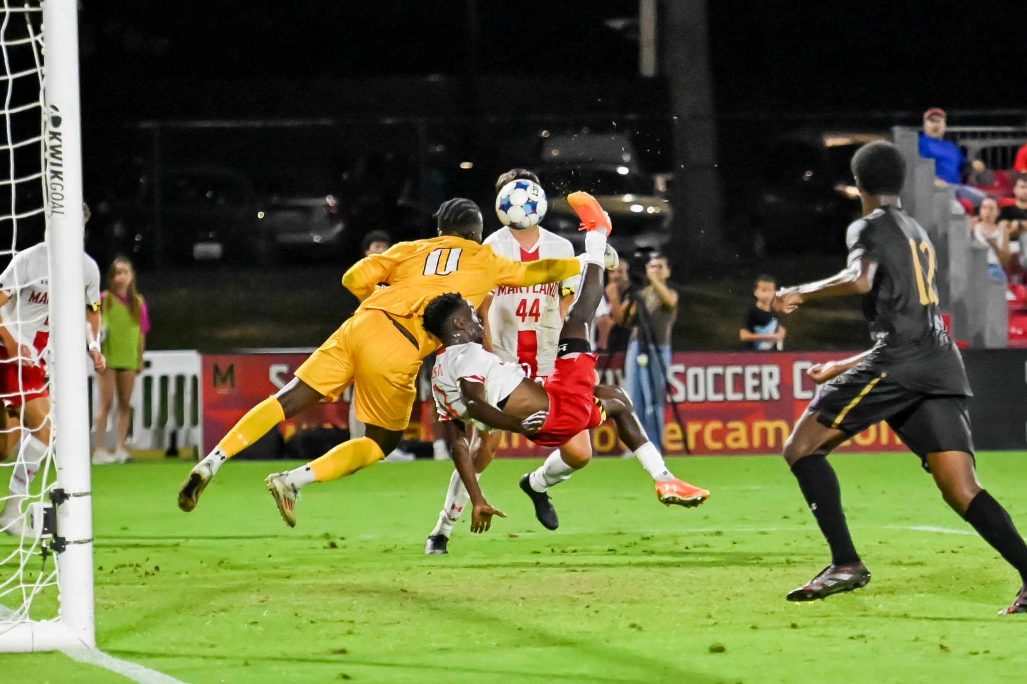 With his back to the Northwestern net, Masereka turned to acrobatics. He jumped into a right-footed bicycle kick, beating Hangi from close range for Maryland’s (6-0-2, 2-0-1 Big Ten) most eloquent goal this season.