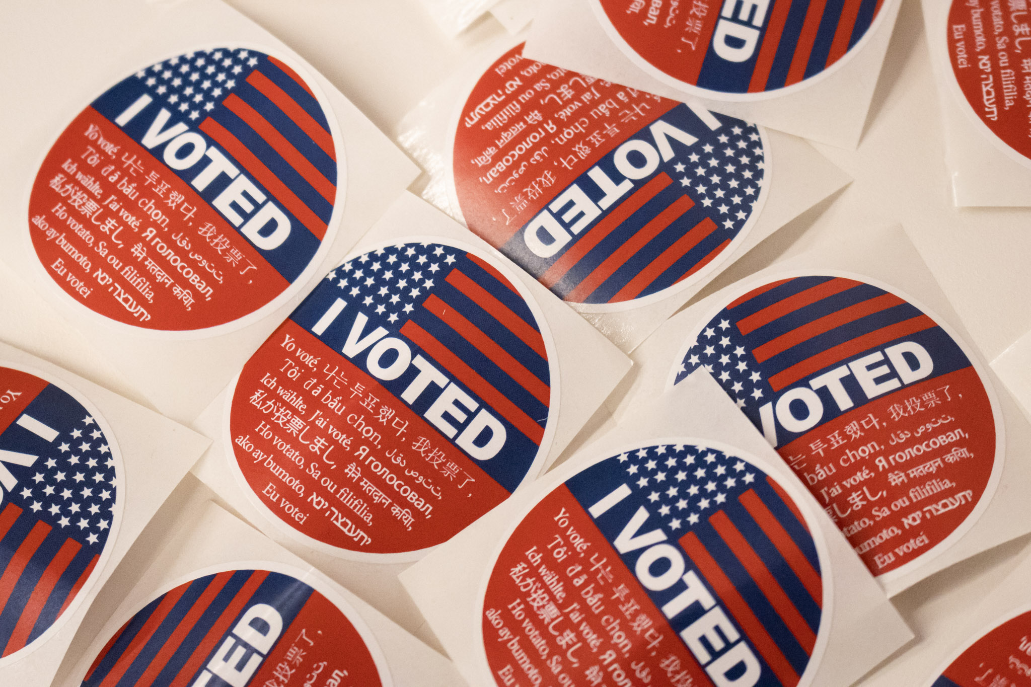 Election Day stickers sit inside College Park City Hall on Nov. 4, 2025. (Faith Bissen/The Diamondback)