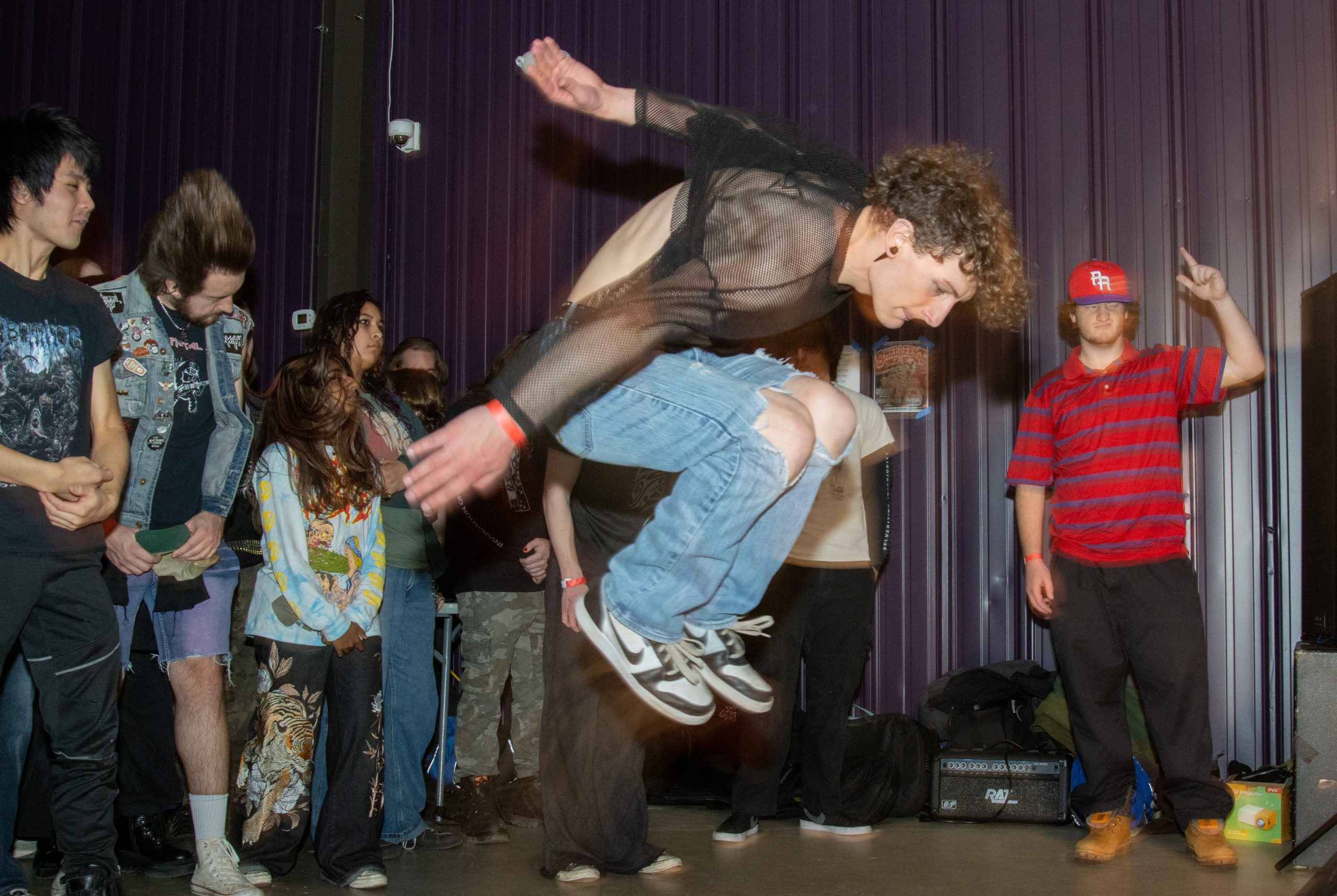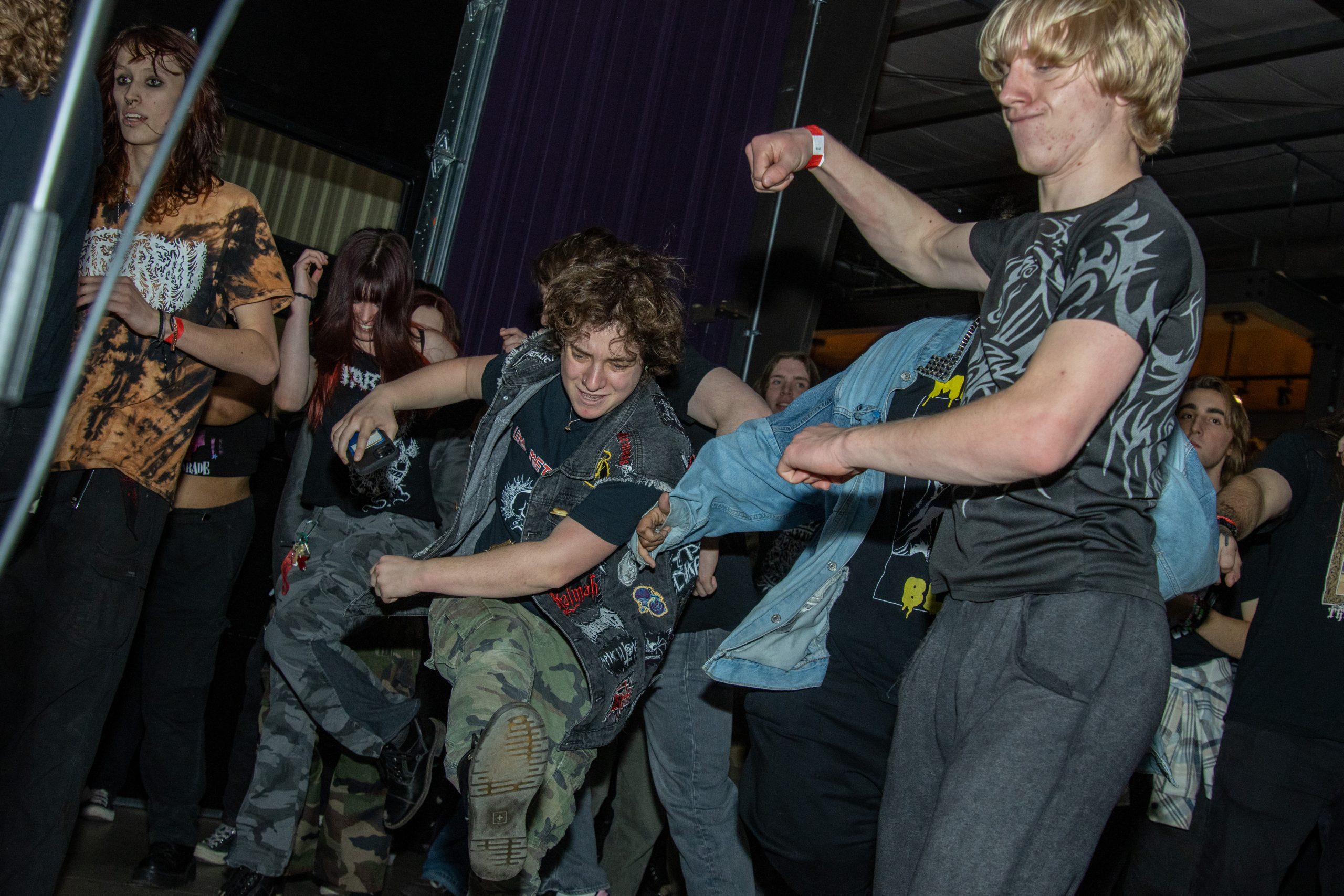 Several attendees moshed in the pit. Others entered the pit less frequently but with confident energy and defined dance moves. Some chose not to participate in the pit, simply enjoying the music in other ways such as headbanging and swaying.