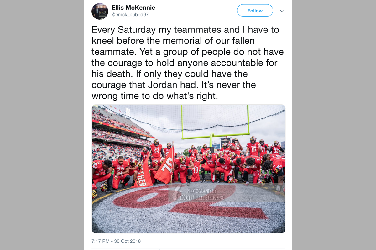 Maryland football players speak out on Twitter about DJ Durkin decision "A paycheck was chosen over [Jordan McNair's] life." James Crabtree-Hannigan October 31, 2018