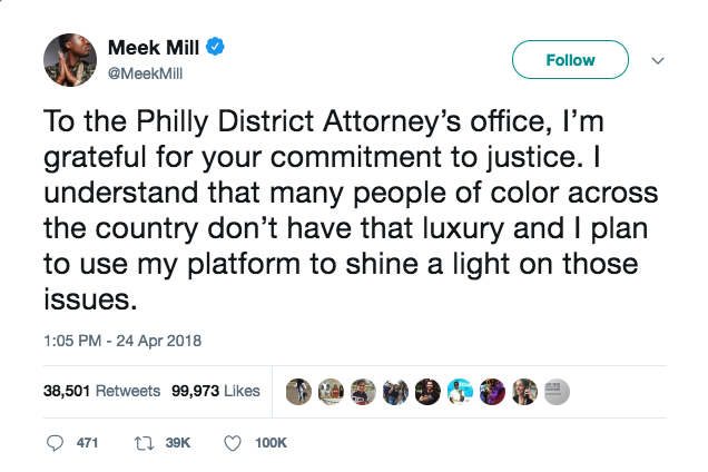 Meek Mill is out of prison and reportedly will be at the 76ers game The rapper was imprisoned in November after he violated his probation. Jack Roscoe April 24, 2018