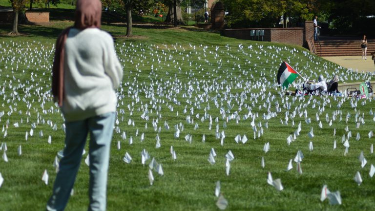 UMD students honor people killed in Palestine with flag display Event organizers planted about 15,000 white flags on McKeldin Mall and aimed to educate the university community about Israel’s violence in Palestine. Sam Gauntt August 29, 2024