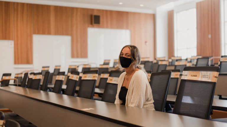 This semester, students who do have in-person classes wear masks at all time and sit distanced from their classmates.