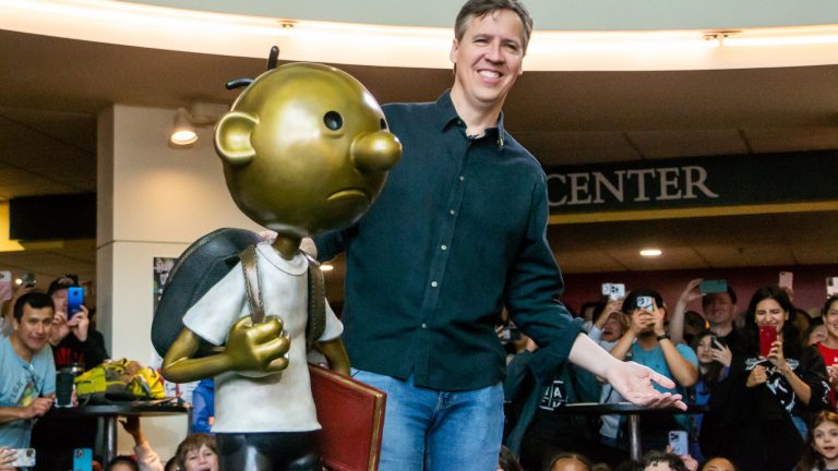 Maryland Day crowd shares excitement as Jeff Kinney unveils Greg Heffley statue Armed with their book copies, families and Maryland students alike hoped for the chance to meet and get the autograph of Jeff Kinney, author and UMD alum. Sofia Appolonio April 30, 2023