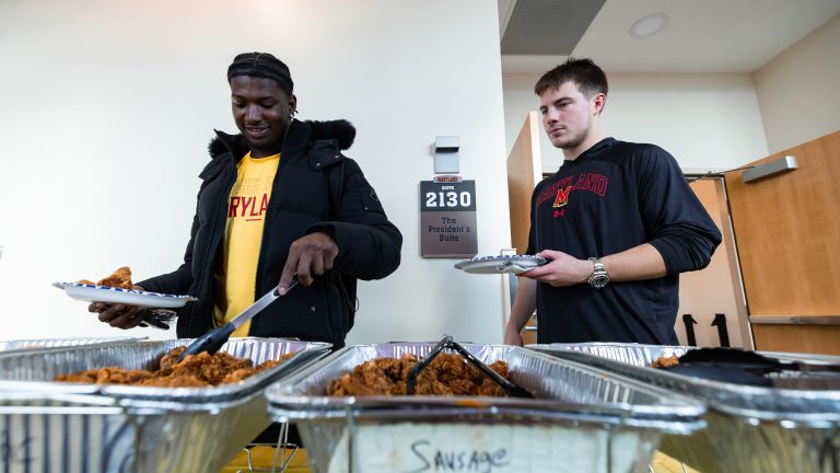 How Maryland football’s Thanksgiving turned into a team-wide gathering this year Ryan Davis revamped the Terps’ holiday tradition with Cajun dishes, connection-building and a focus on giving every player a place to belong. Jacob Kauderer 3 minutes ago