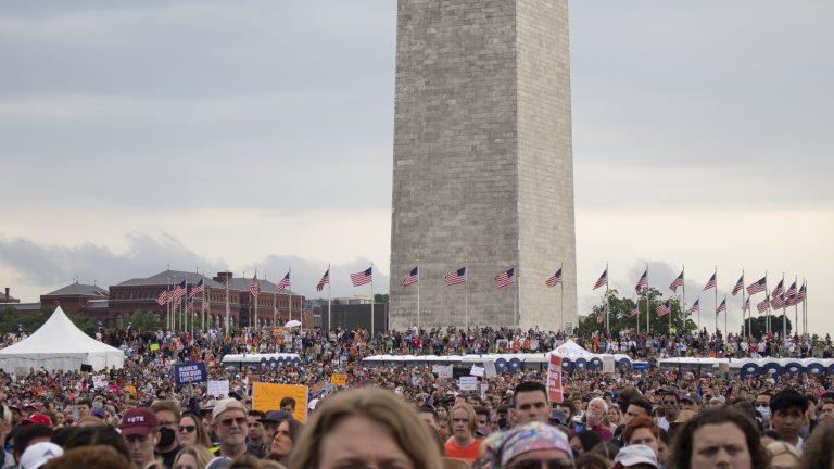 About 40,000 people showed up to rally near the Washington Monument on June 11 with protest signs and pins. March For Our Lives, a youth-led organization founded by Marjory Stoneman Douglas High School shooting survivors, planned the event in response to the shooting in Uvalde, Texas.
